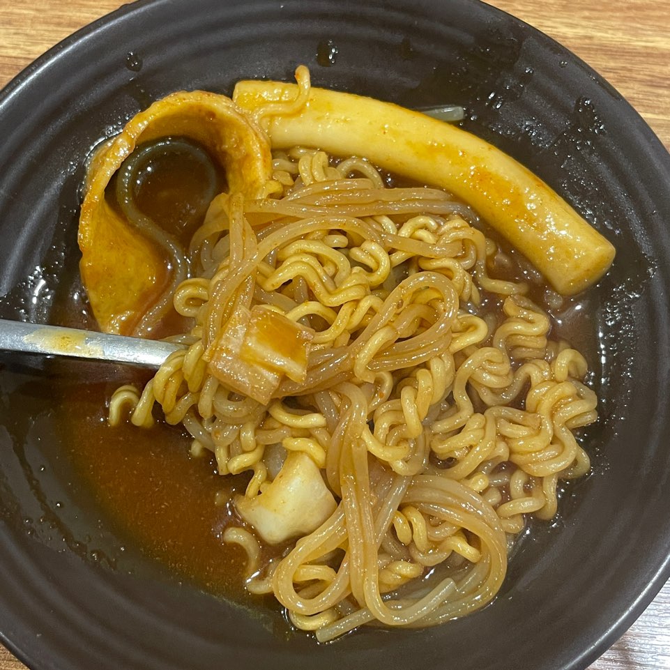 계란도 부셔서 떡볶이 국물 흠뻑해서 먹고