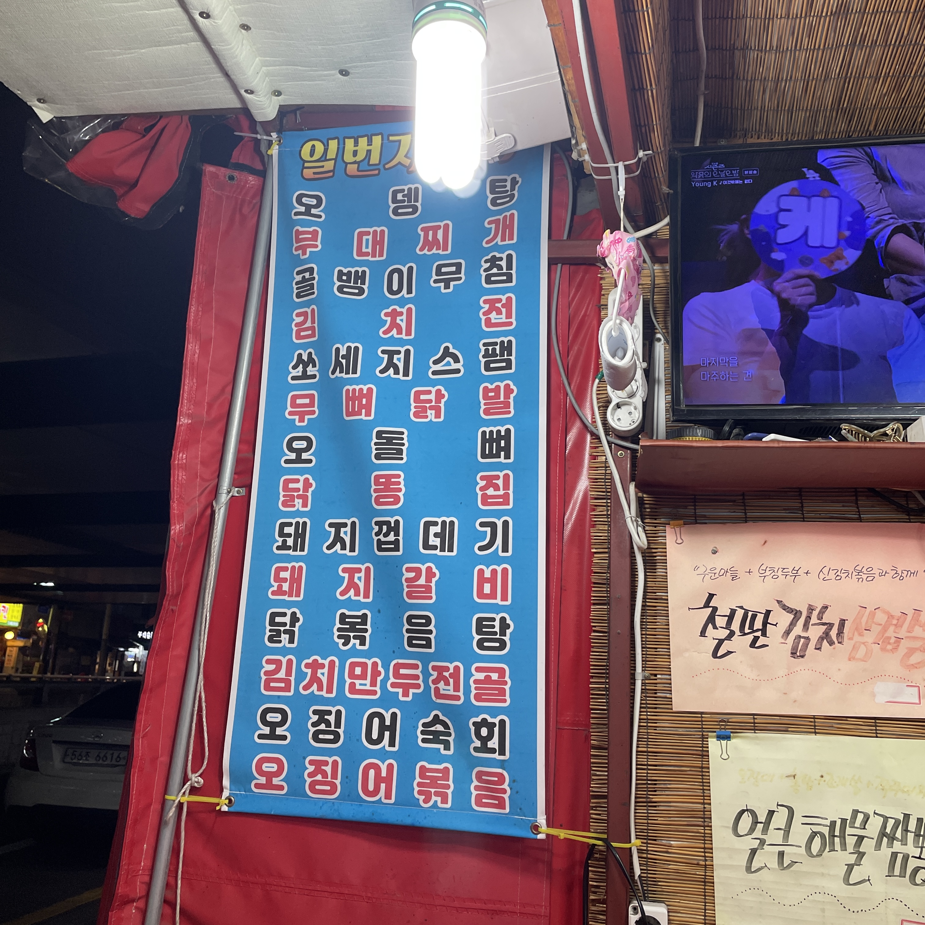 《일번지포차》 메뉴판